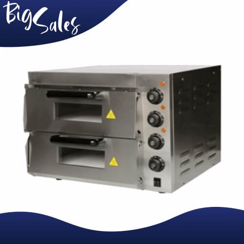 This 2 Deck Electric (budget) Pizza oven with (FREE PIZZASTONES) is adapted for baking 2 pizza’s in one-time production, the use of high-quality electrical components, to ensure production quality. Easy in operation, low repair rate, it has become the best choice for the budget and size of the unit, canteens, hotels or for you at home! This oven has a chamber size of 41.5×40 ×12 cm (x2), this will fit you two standard-size baking trays. The oven reaches a temperature of 350°C
