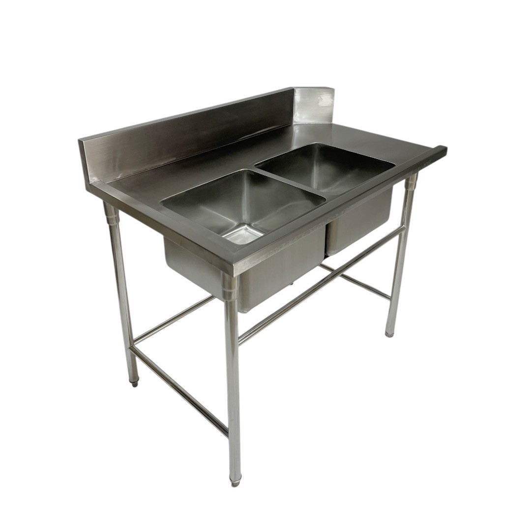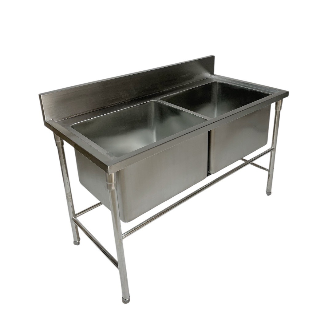 We can custom make any size of stainless steel sink. Anything is possible, open bottom, overhead shelving, doors, cabinets, dishwash rack storage etc.